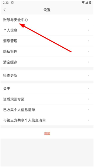 2、進(jìn)入設(shè)置頁面后,點擊賬號與安全中心選項。