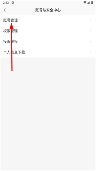 3、在賬號與安全中心頁面,點擊賬號管理選項。