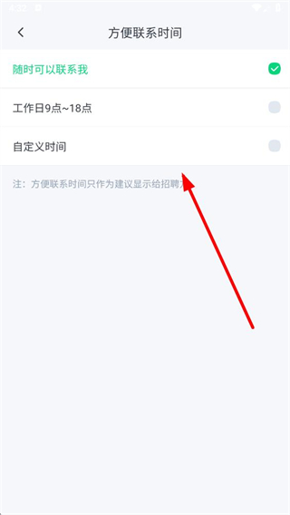 4、在方便聯(lián)系時間頁面,選擇想要設(shè)置的聯(lián)系時間,即可完成設(shè)置。