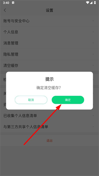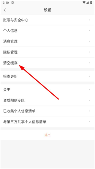 3、在設(shè)置頁面中,選擇清空緩存選項,觸發(fā)提示彈窗。