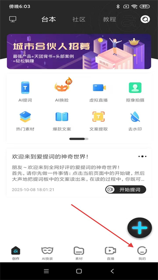 1、打開提詞器愛提詞APP,進(jìn)入到首頁內(nèi),點擊右下角我的圖標(biāo)。