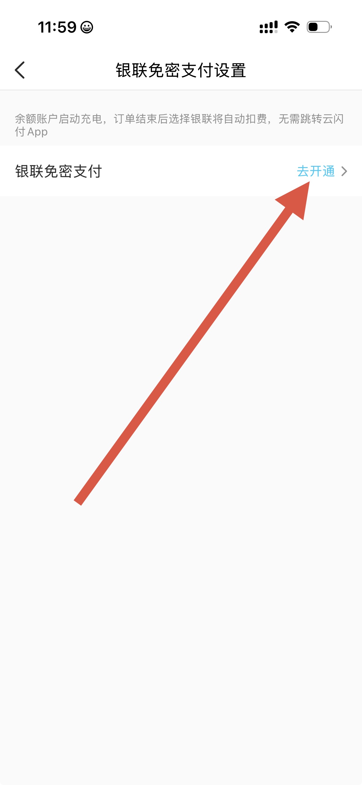 4、進(jìn)入相應(yīng)支付方式設(shè)置界面后,按提示操作,點(diǎn)擊去開通,即可完成支付方式設(shè)置。