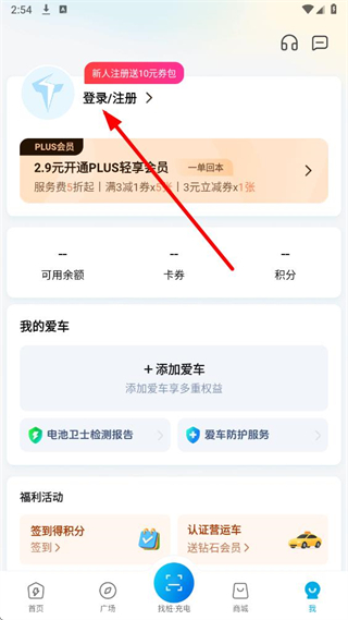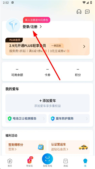 1、在特來電app我的頁面,點(diǎn)擊登錄注冊選項(xiàng),進(jìn)入手機(jī)號登錄/注冊頁面。