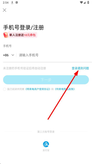 2、在手機(jī)號登錄注冊頁面,點(diǎn)擊登錄遇到問題選項(xiàng)。