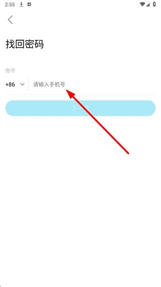 4、在頁面輸入手機(jī)號,點(diǎn)擊下一步,按提示完成密碼找回,使用新密碼即可登錄特來電app。