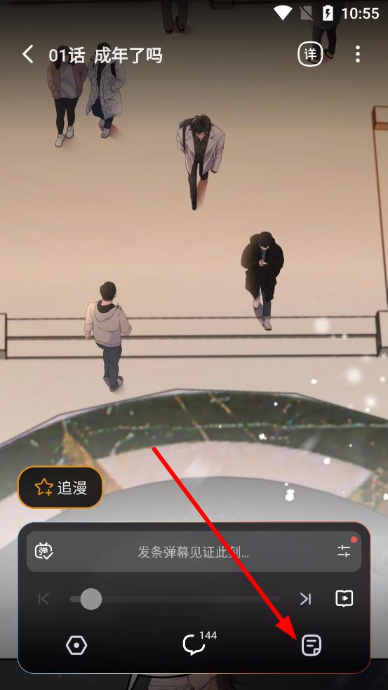 1、打開(kāi)嗶哩嗶哩漫畫(huà)APP,進(jìn)入漫畫(huà)閱讀界面,點(diǎn)擊屏幕任意位置喚出底部菜單欄,點(diǎn)擊底部菜單欄右側(cè)類似書(shū)本的目錄按鈕。