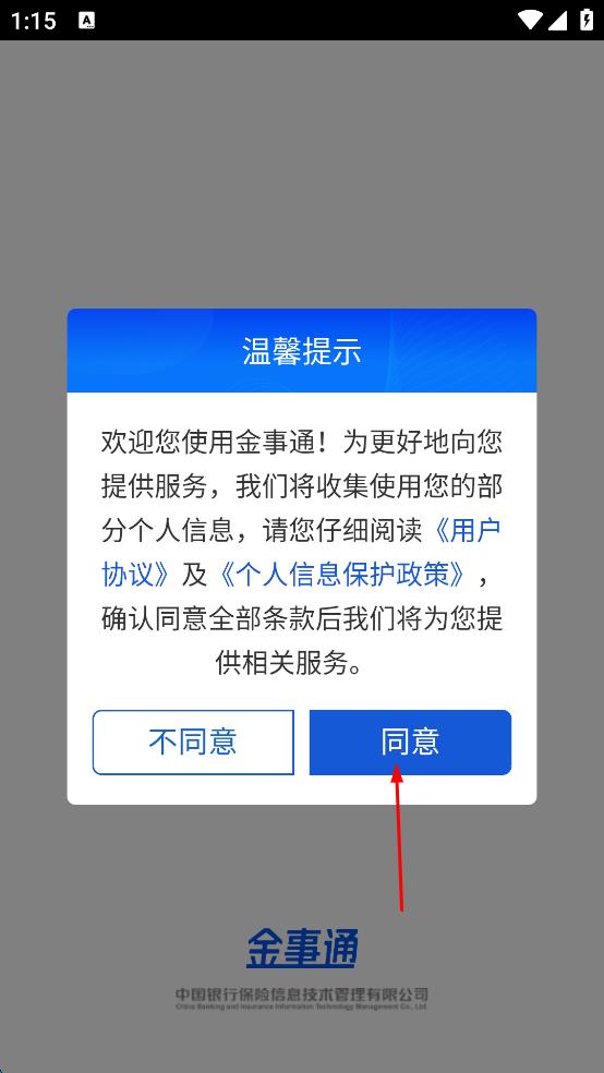 1、打開(kāi)金事通APP,彈出溫馨提示窗口,仔細(xì)閱讀《用戶協(xié)議》及《個(gè)人信息保護(hù)政策》后,點(diǎn)擊“同意”按鈕,進(jìn)入APP主界面。