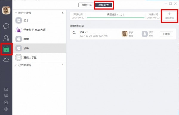 老師在【課程】中選擇【課程列表】,可添加課節(jié),方便快速開(kāi)課。