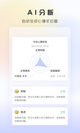 除了ai自動(dòng)分析外,你還可以選擇專業(yè)心理測(cè)評(píng),判斷自己是否出現(xiàn)了抑郁、焦慮、人際關(guān)系敏感等情況。