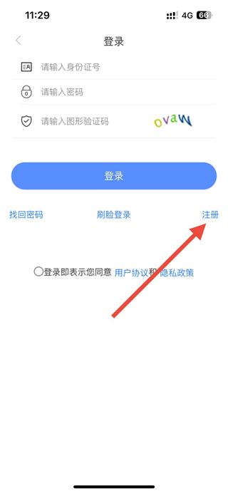 3、在登錄界面的右下角,點擊注冊選項,切換至賬號注冊的信息填寫界面。