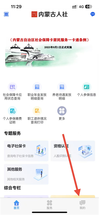 1、打開內(nèi)蒙古人社App,點擊底部導(dǎo)航欄中的我的選項。