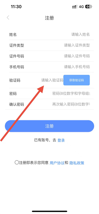 4、在頁面依次填寫信息、手機號碼,獲取驗證碼填寫,設(shè)置密碼后,勾選協(xié)議并點擊注冊,即可完成賬號注冊。