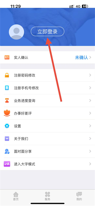 2、在我的頁面中,點擊立即登錄按鈕,進入登錄與注冊的選擇界面。
