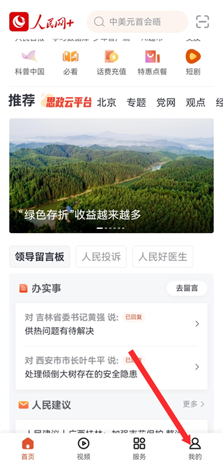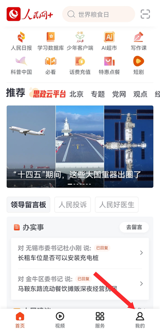 1、在人民網(wǎng)首頁,點(diǎn)擊底部我的按鈕,進(jìn)入個人的頁面。
