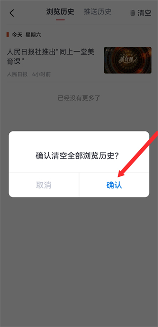 4、在系統(tǒng)提示框中,點(diǎn)擊確認(rèn)按鈕,完成瀏覽記錄清空操作。