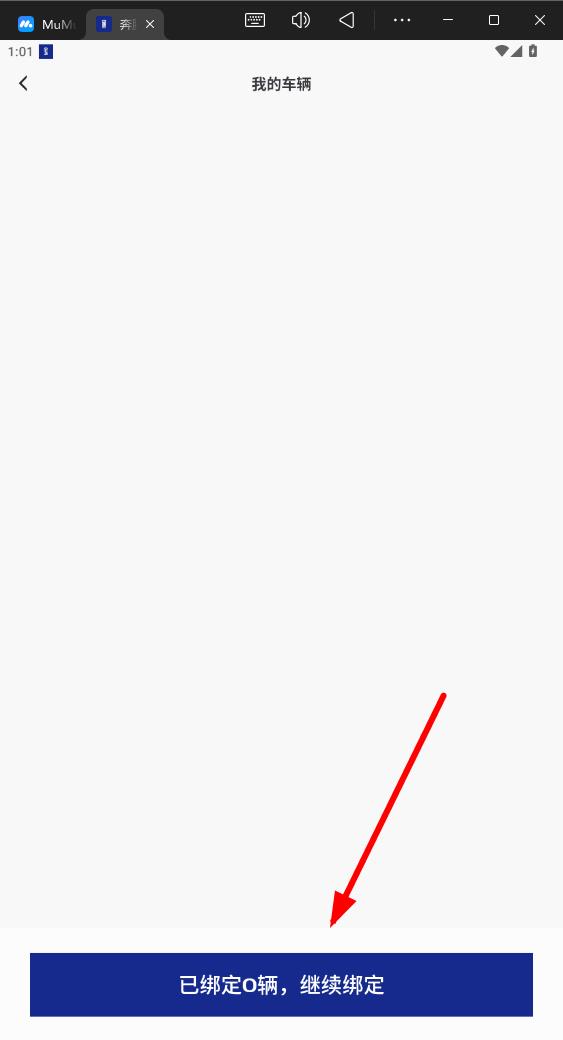 3、在我的車輛頁面,點擊下方已綁定O輛,繼續(xù)綁定按鈕,進入添加車輛頁面。
