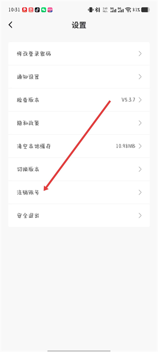2、在設(shè)置頁面點擊注銷賬號選項,進入申請注銷賬號。