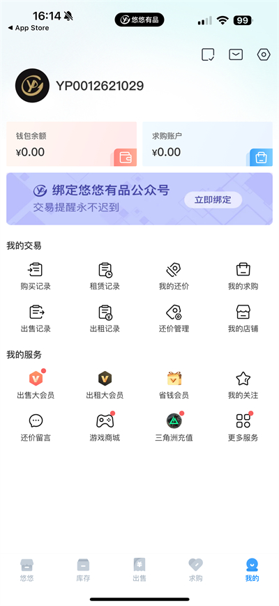 1、打開悠悠有品app,點擊底部導(dǎo)航欄最右側(cè)我的選項,進入個人頁面。