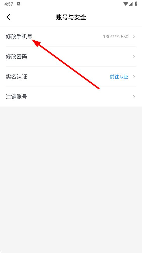 4、在賬號與安全頁面,點擊修改手機號,進入驗證手機號頁面。