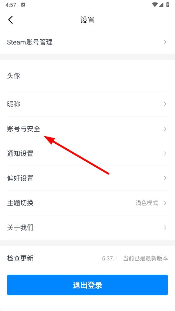 3、在設(shè)置界面,找到并點擊賬號與安全選項。