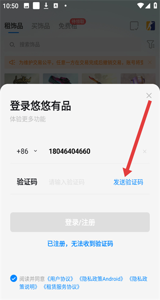 3、在登錄頁面輸入手機號碼,點擊“發(fā)送驗證碼”。