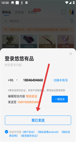 4、按照提示編輯短信內(nèi)容并發(fā)送后,點擊“我已發(fā)送”,完成賬號注冊登錄操作。