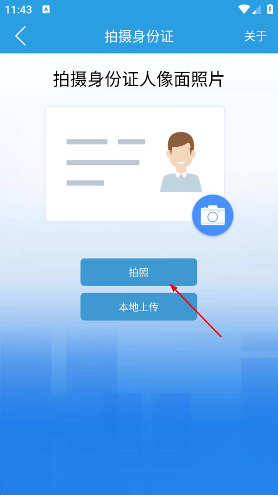 3、在拍攝身份證頁面,點(diǎn)擊“拍照”,進(jìn)入身份證人像面拍攝界面。