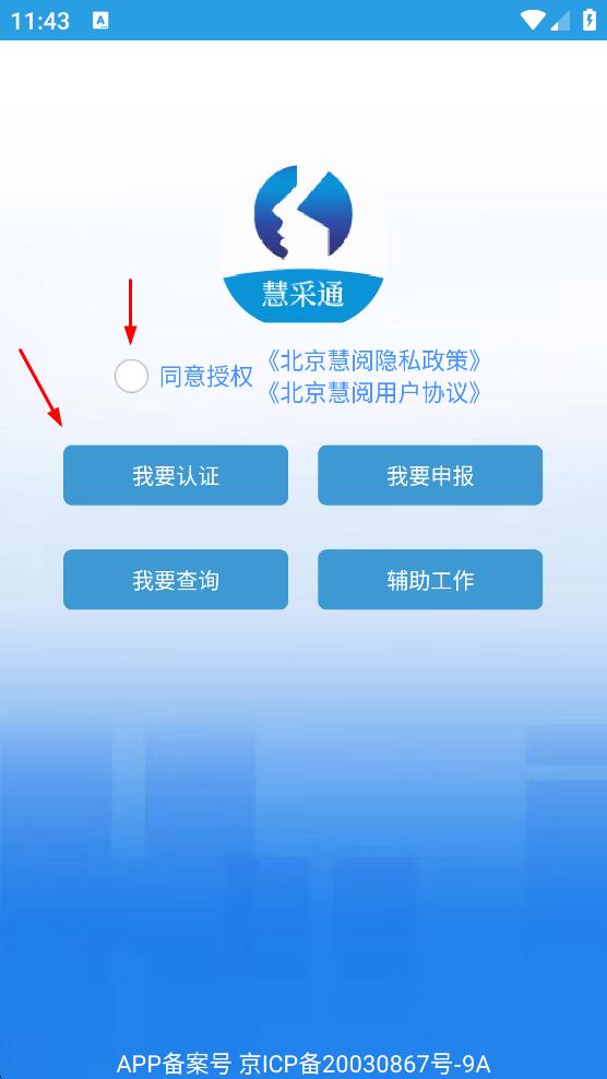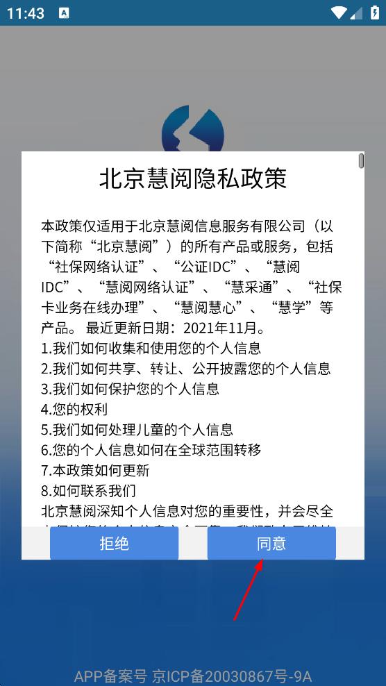 1、打開慧采通,在彈出的北京慧閱隱私政策提示框中,點(diǎn)擊“同意”,進(jìn)入慧采通主界面。