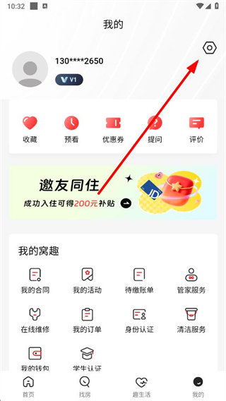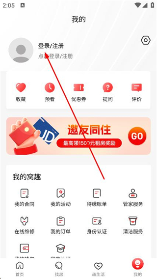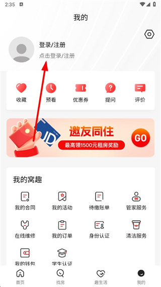 1、打開(kāi)窩趣公寓APP,點(diǎn)擊右下角我的進(jìn)入個(gè)人頁(yè)面。