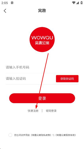 3、在登錄界面,找到并點(diǎn)擊下方的快速注冊(cè)選項(xiàng)。