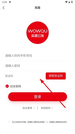 4、在密碼登錄頁(yè)面,輸入手機(jī)號(hào)碼、密碼,獲取驗(yàn)證碼,勾選相關(guān)協(xié)議后點(diǎn)擊登錄。