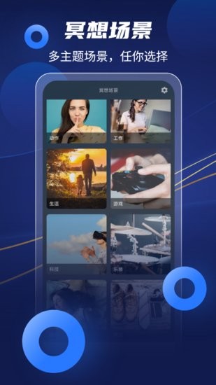 冥想讓您腦子放空,思想放松,讓大腦得到休息,從而更好的工作生活.好的音樂和場景圖片能提供更好的冥想氛圍,包括山,水,鳥鳴等.放空冥想是借助互聯(lián)網(wǎng)和科技的力量,讓每個人每天都能使用生活冥想平臺,幫助更多的人釋放焦慮,改善睡眠,提升能量.愿越來越多的人從冥想中受益.
