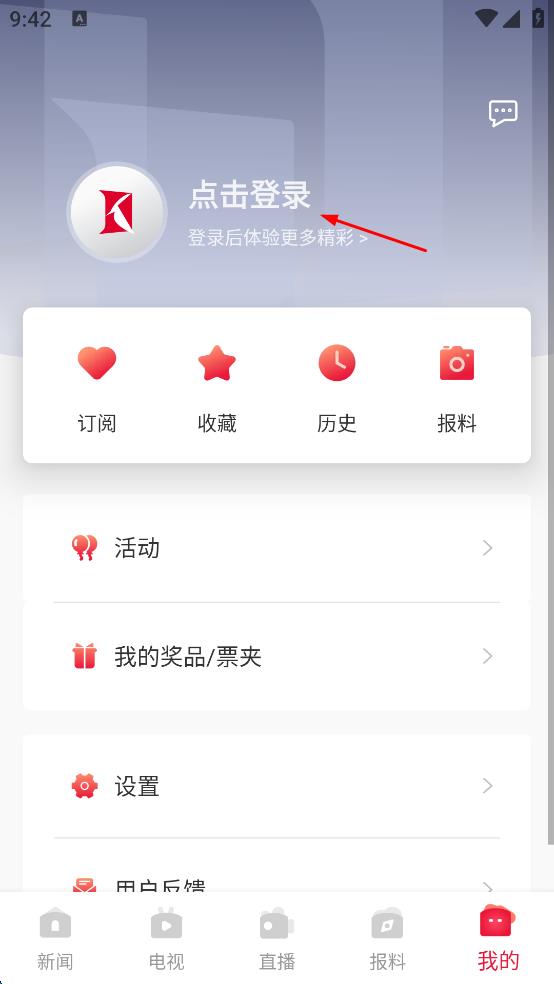 3、在個人中心頁面,點擊“點擊登錄”區(qū)域,進入短信登錄頁面。