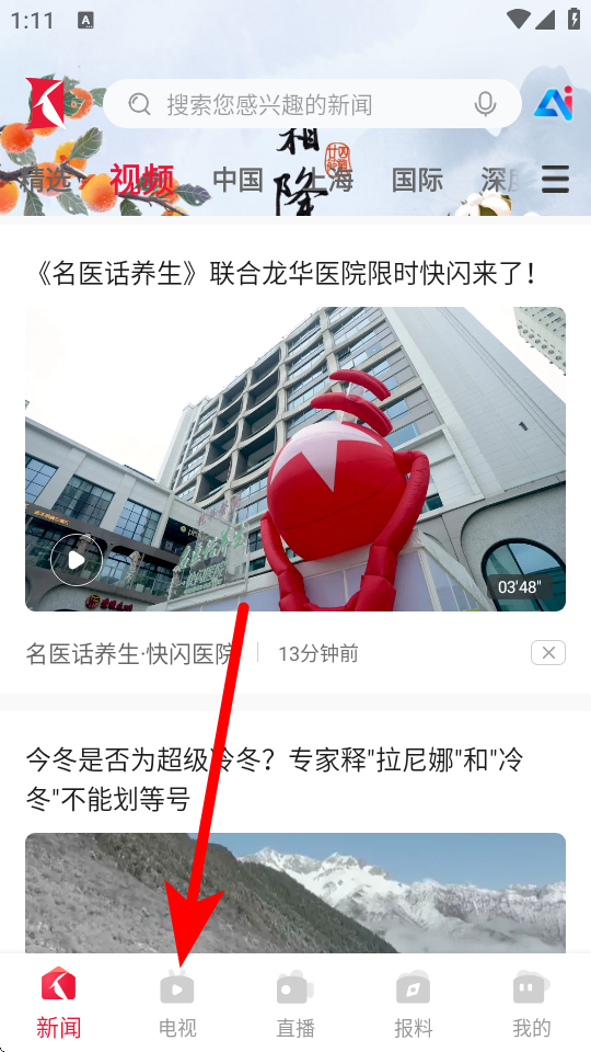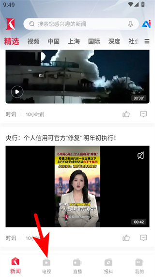 1、在看看新聞app首頁,點擊底部電視選項,進入電視頁面。