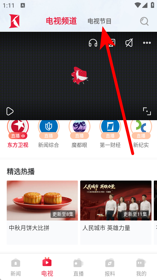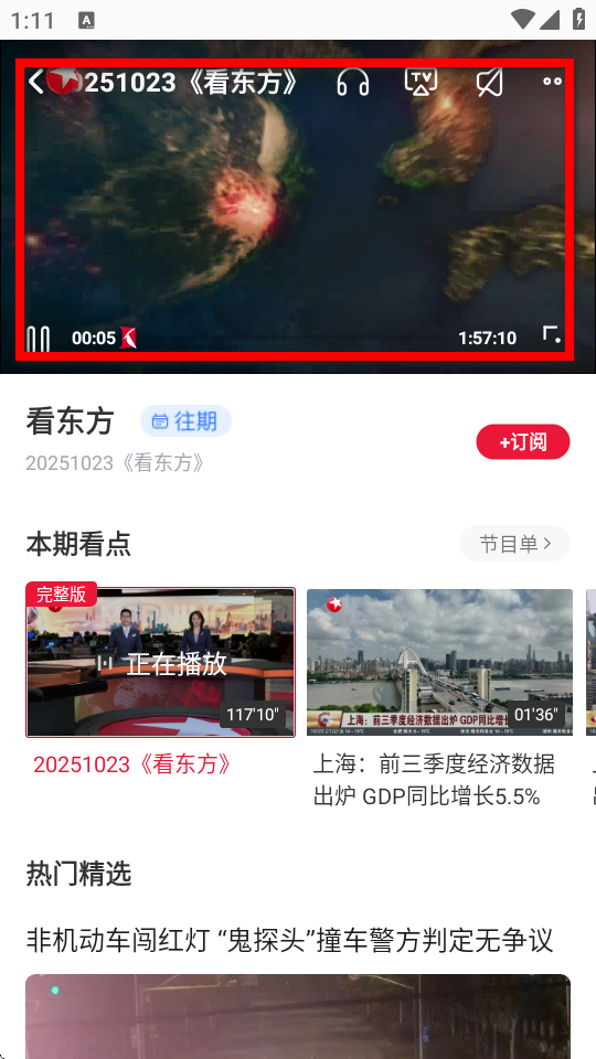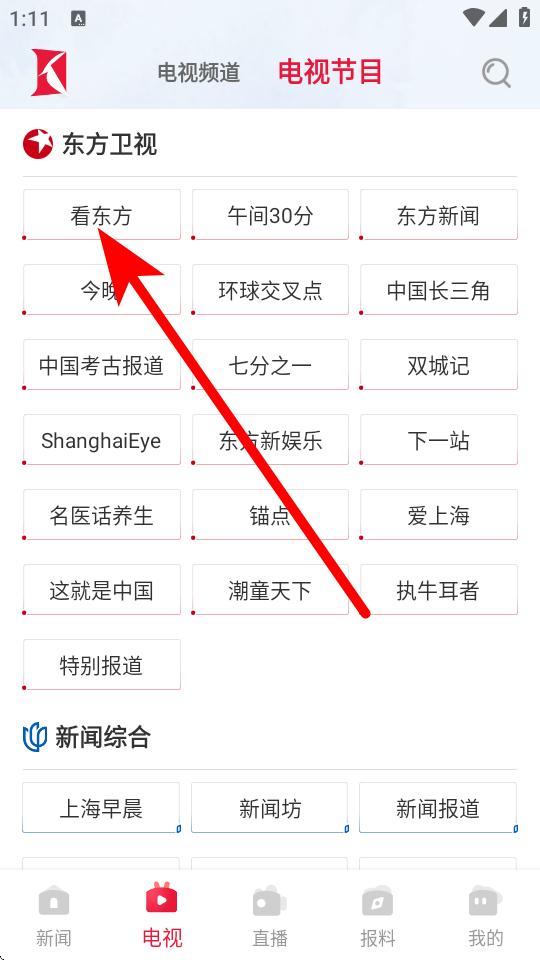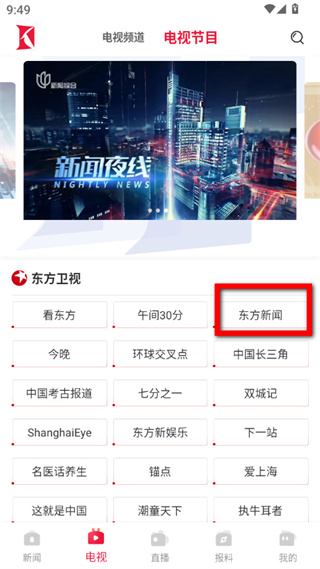 3、在節(jié)目列表頁面,選擇東方新聞等節(jié)目,進入節(jié)目播放頁面。