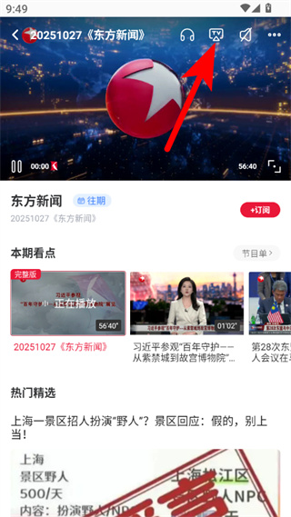 4、在節(jié)目播放頁面,找到投屏圖標并點擊,即可進行投屏操作。