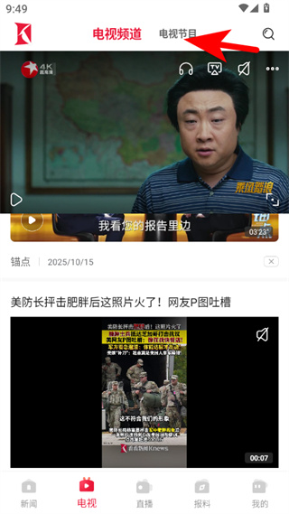 1、在看看新聞app首頁,點擊電視選項,進入電視頻道頁面。