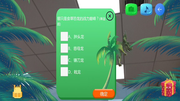 《兒童掛機(jī)益智游戲》:霸王龍出現(xiàn)的概率很低,想要捉到它,就必須有耐心的答題哦,超簡(jiǎn)單的玩法讓兒童玩起來(lái)也輕松;