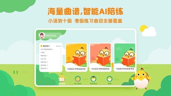 小湯到十級曲譜全覆蓋:小殼陪練擁有豐富的曲譜資源庫供用戶練習(xí),從入門曲譜集到十級考級曲譜全覆蓋,一站式練琴用這個APP就夠了。