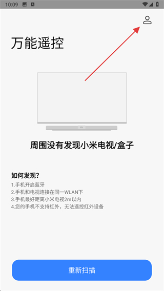 1、打開小米萬能遙控應(yīng)用,點(diǎn)擊右上角的個(gè)人圖標(biāo)。