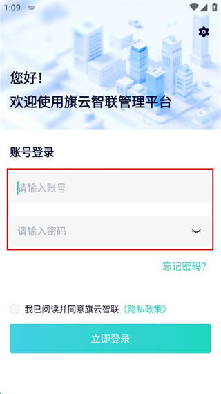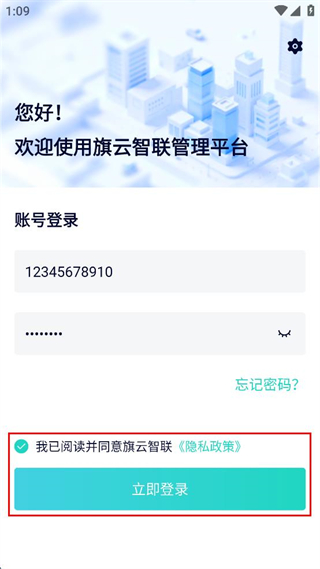 4、勾選已閱讀并同意隱私政策的選項(xiàng),點(diǎn)擊立即登錄按鈕進(jìn)入管理平臺(tái)。