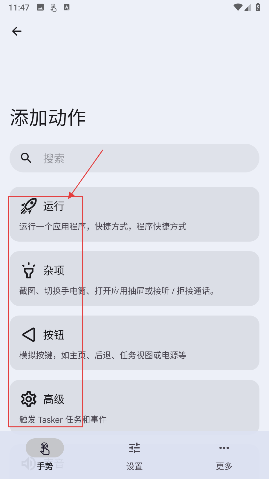 3、選擇需要的動作,設(shè)置完成后,雙擊手機背部即可觸發(fā)該動作。