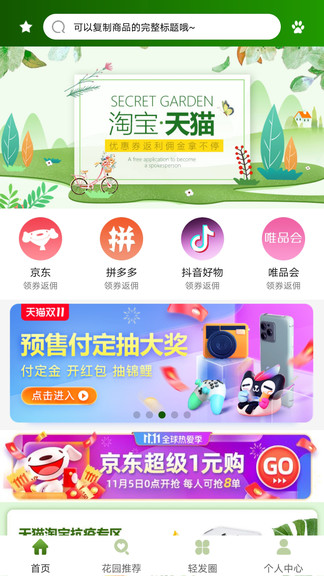 傾城秘密花園app不但可免費(fèi)領(lǐng)取各大平臺(tái)隱藏的大額優(yōu)惠券,還能為買(mǎi)家提供高傭返利,傾城秘密花園app同時(shí)所有享益粉絲還可享受手機(jī)話費(fèi)、音樂(lè)/視頻會(huì)員充值等超100項(xiàng)優(yōu)惠特權(quán),覆蓋你吃喝玩樂(lè)所有的線下生活場(chǎng)景,讓你消費(fèi)就省錢(qián),分享就賺錢(qián).......