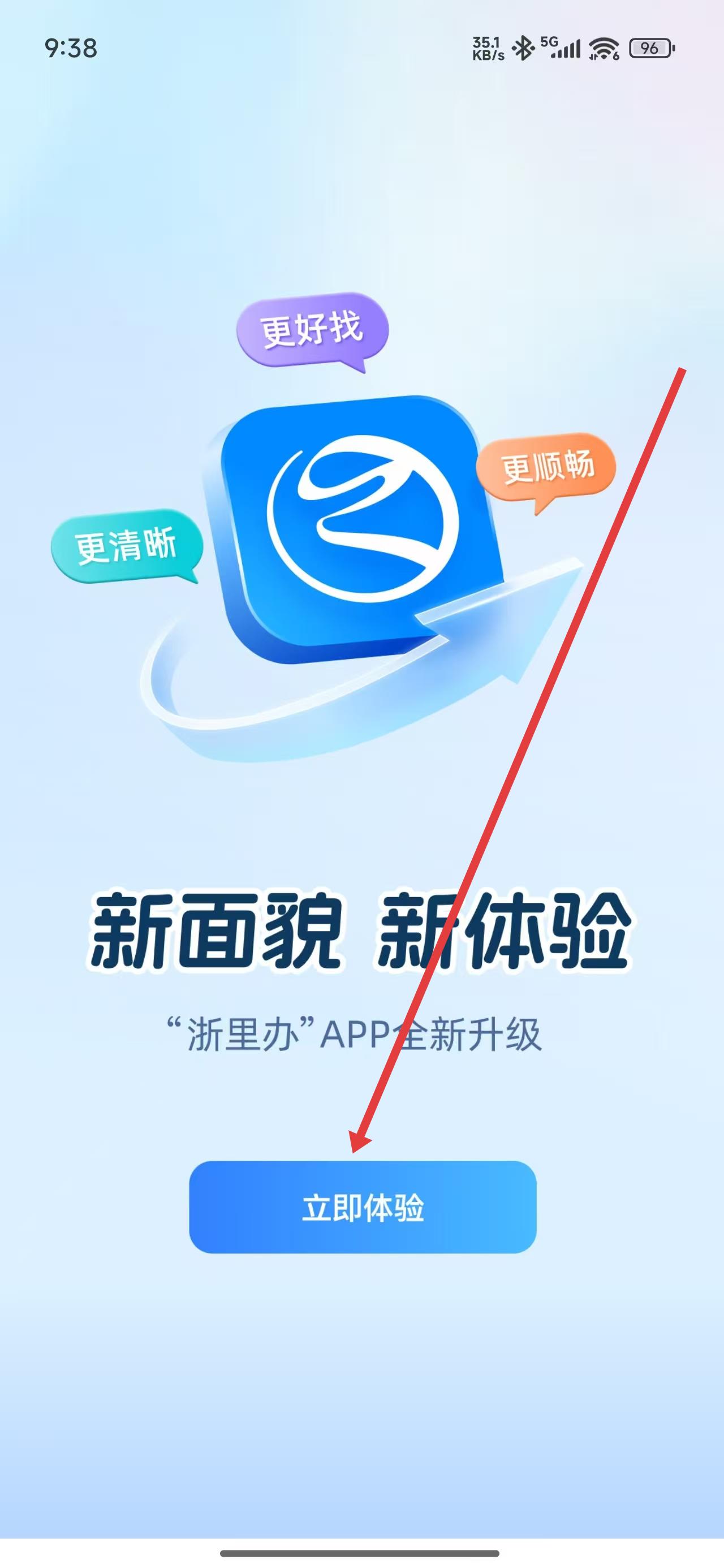 1、在浙里辦引導(dǎo)界面中點(diǎn)擊立即體驗(yàn)按鈕,正式進(jìn)入軟件。