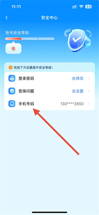 3、在安全中心頁(yè)面,找到并點(diǎn)擊手機(jī)號(hào)碼選項(xiàng)。