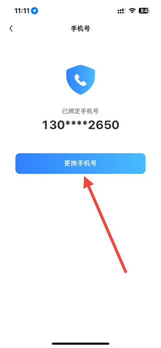 4、在手機(jī)號(hào)頁(yè)面,點(diǎn)擊更換手機(jī)號(hào)按鈕,按照提示完成手機(jī)號(hào)更換操作。