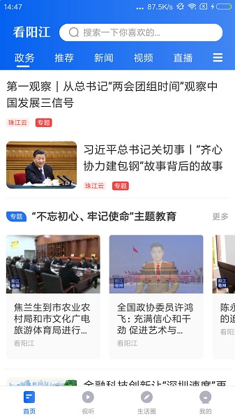 看陽(yáng)江軟件是一個(gè)了解陽(yáng)江當(dāng)?shù)氐男侣務(wù)?wù)的app,實(shí)時(shí)更新新聞咨詢,可以搜索自己感興趣的任意事,不出門(mén)就掌握各種信息,還有視頻新聞、新聞直播等均可在線觀看,還可以在手機(jī)上辦理公共服務(wù),讓你真正感受到足不出戶事已辦完的便利,感興趣的快來(lái)下載吧。