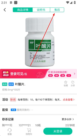 3、在商品詳情頁(yè)上方的標(biāo)簽欄中,點(diǎn)擊售后標(biāo)簽,切換到售后信息頁(yè)面。