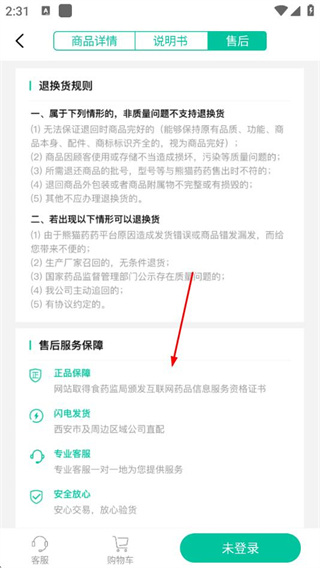 4、在售后頁(yè)面可查看退換貨規(guī)則、售后服務(wù)保障等內(nèi)容。