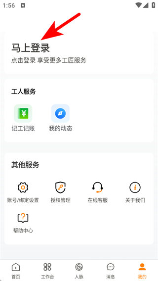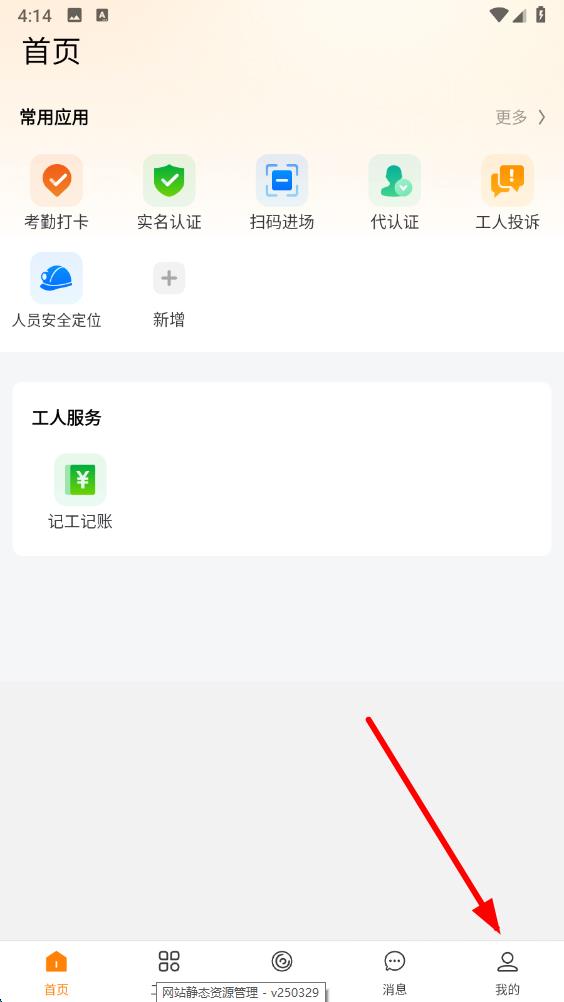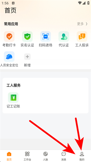 1、打開云筑工匠app,在底部導(dǎo)航欄點擊最右側(cè)我的圖標(biāo),進入相關(guān)界面。